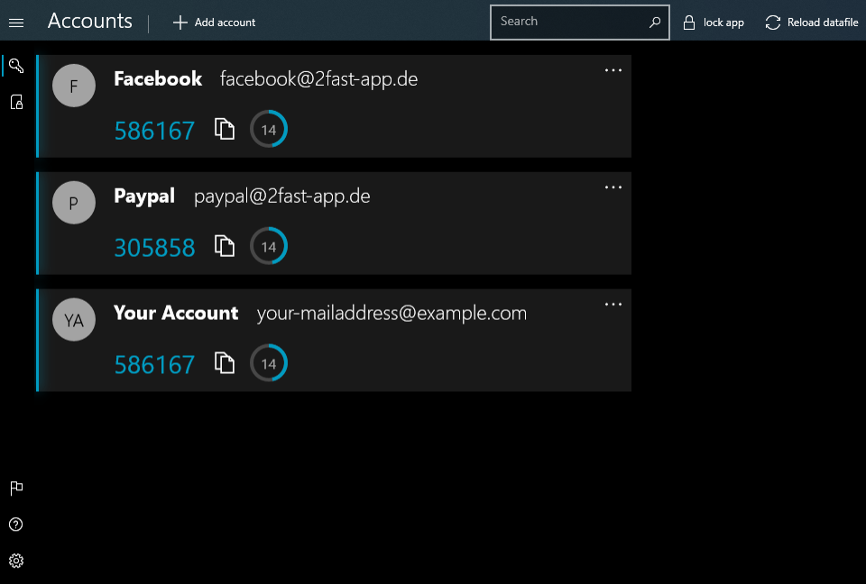 2fast (acronym for two factor authenticator supporting TOTP) is a free, open source, two factor authenticator for Windows and other platforms. 2fast has the ability to store the encrypted data at a place of your choice instead of a 3rd party cloud location.