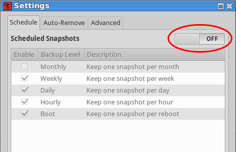 - You can also disable the scheduled snapshots completely.