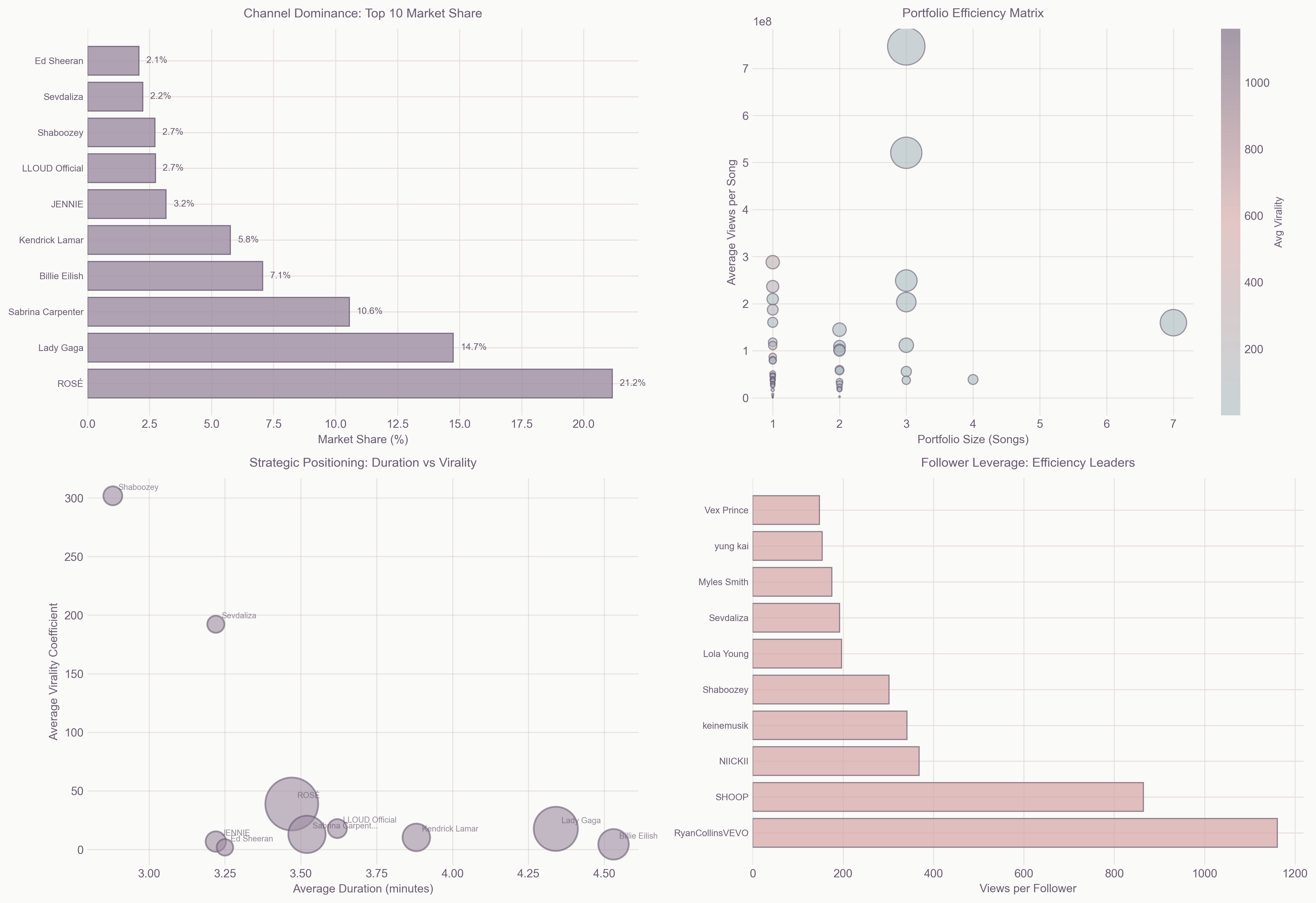 The Gini coefficient of 0.697 reveals that YouTube is more unequal than most countries' wealth distributions. I found five distinct archetypes of success, each following different trajectories to virality.