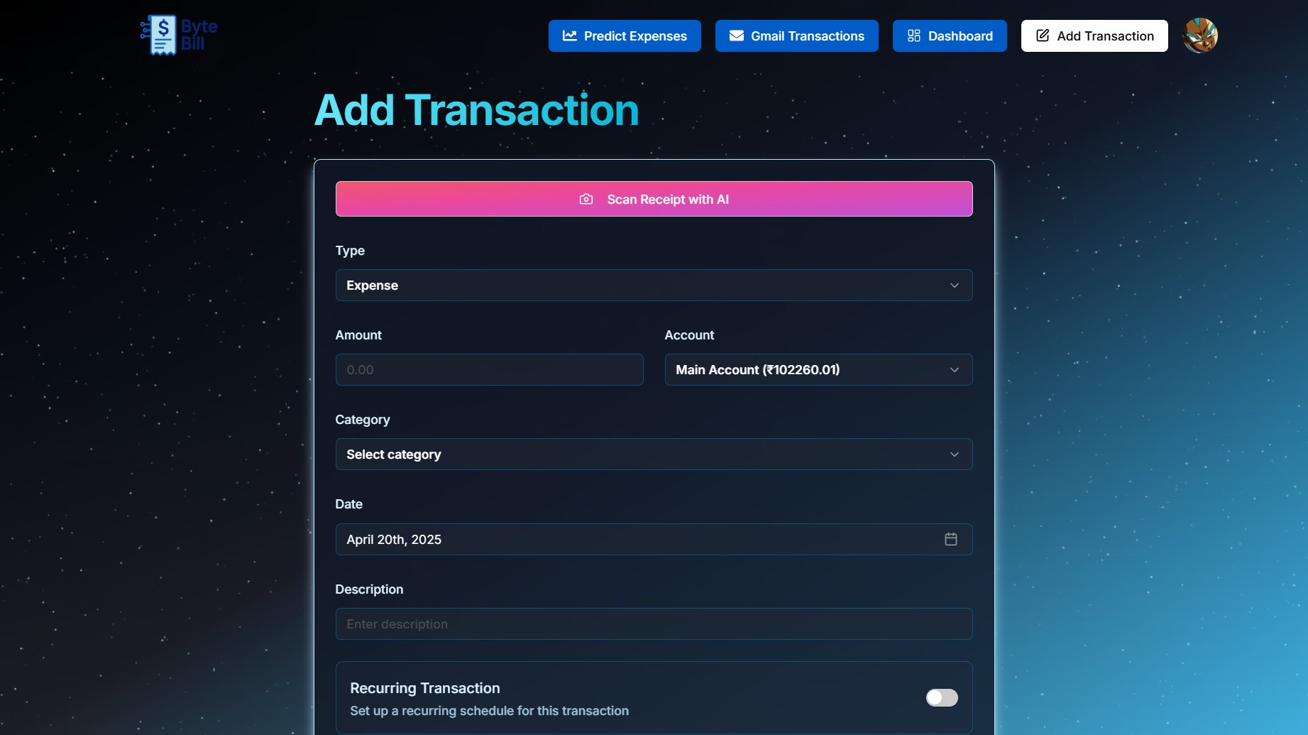 It also supports bill image uploads, using Vision OCR to extract key details from scanned or photographed receipts and bills — making it easier than ever to digitize your finances.