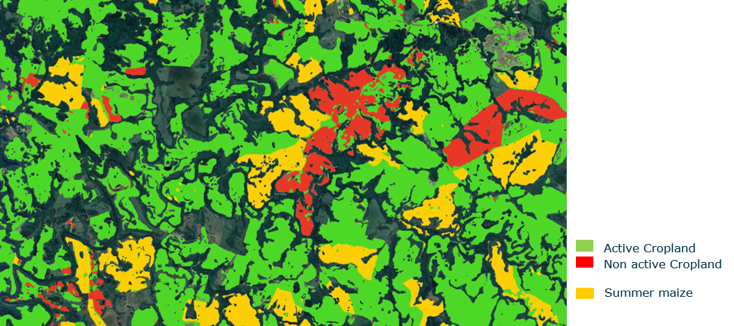 The WorldCereal project produced the first seasonally updated temporary crops, crop type, and irrigation maps at 10-meter spatial resolution and at global scale. The product collection can be accessed at: https://esa-worldcereal.org/en/products/global-maps.