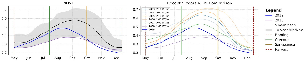 The AGMET Indicators use satellite data to measure key indicators of crop health, including NDVI and NDVI anomalies. (source: https://cropmonitor.org/tools/agmet/)