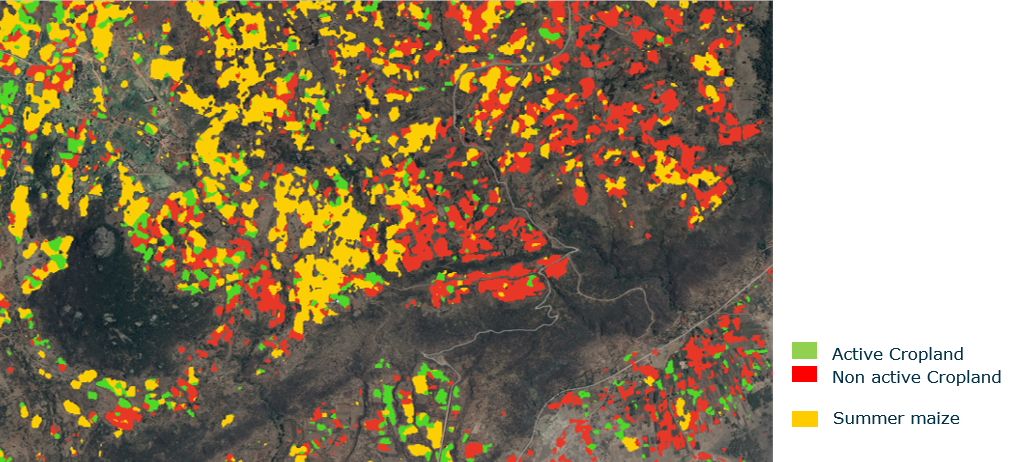 WorldCereal is a global Research and Development challenge aiming to engage the global agricultural community to achieve optimal results. WorldCereal relies heavily on satellites, primarily the operational time series of the Copernicus Sentinels missions, which allow an unprecedented dynamic crop monitoring at global scale. By focusing on maize and wheat during the system demonstration, WorldCereal aims to contribute to the global food security challenge as together with rice, these crops form the world’s most widely cultivated species, accounting for an estimated 42.5 percent of the world’s food calorie supply (FAO).