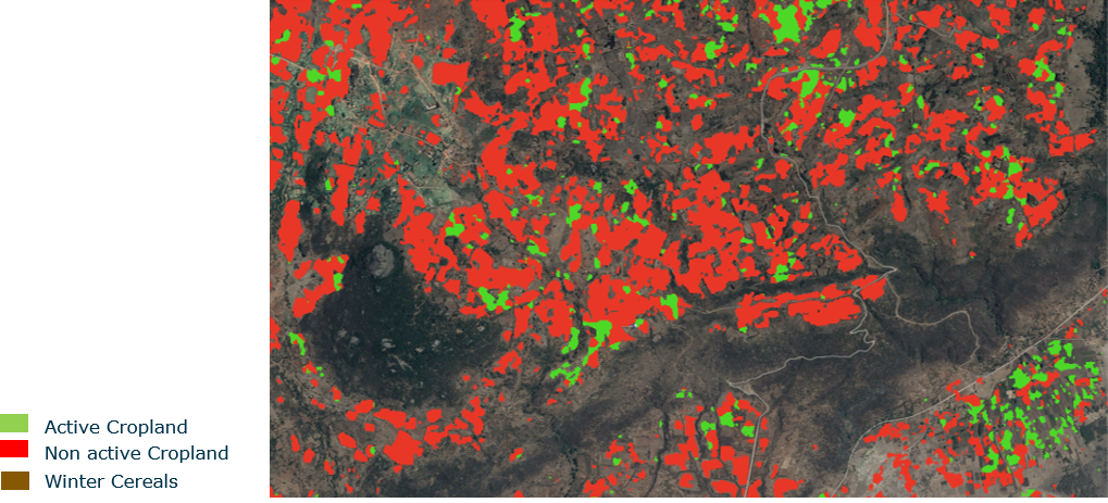 Not only do satellite data helps us understand the current season’s productivity, but they also provide a rich historical record of agricultural measurements that enable researchers to compare outcomes to previous seasons and evaluate broader trends such as the impacts of climate change. For example, significant parts of Northern Africa and the Middle East are experiencing drought conditions including countries such as Morocco, Tunisia (seen below), Syria and Iraq that are signifincatly impacting crop production. Earth observations are key to identifying and quatifying these impacts early and in providing support for future agricultural planning and mitigation actions when needed.