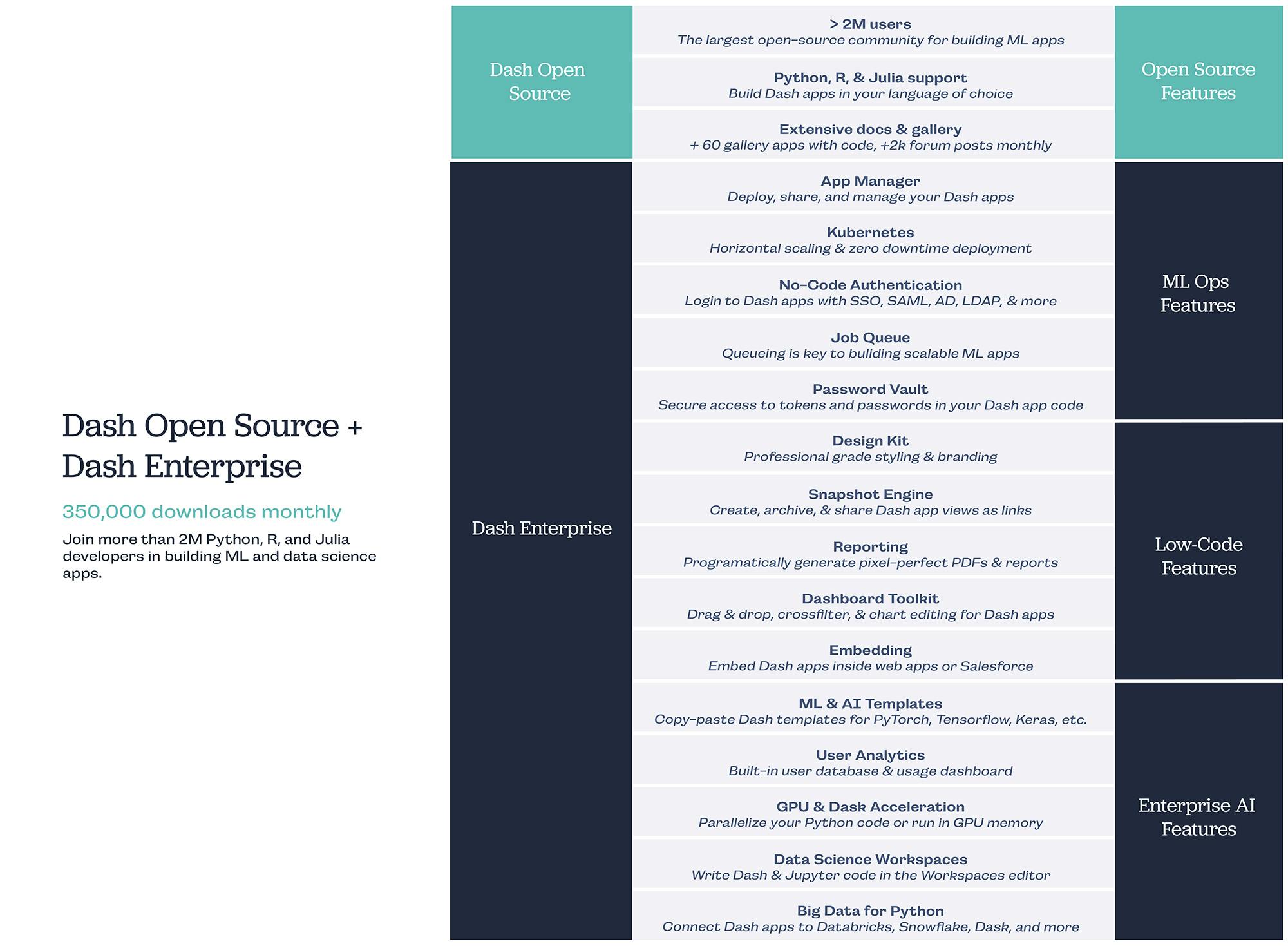 Low-Code Features: Low-code Dash app capabilities that supercharge developer productivity.