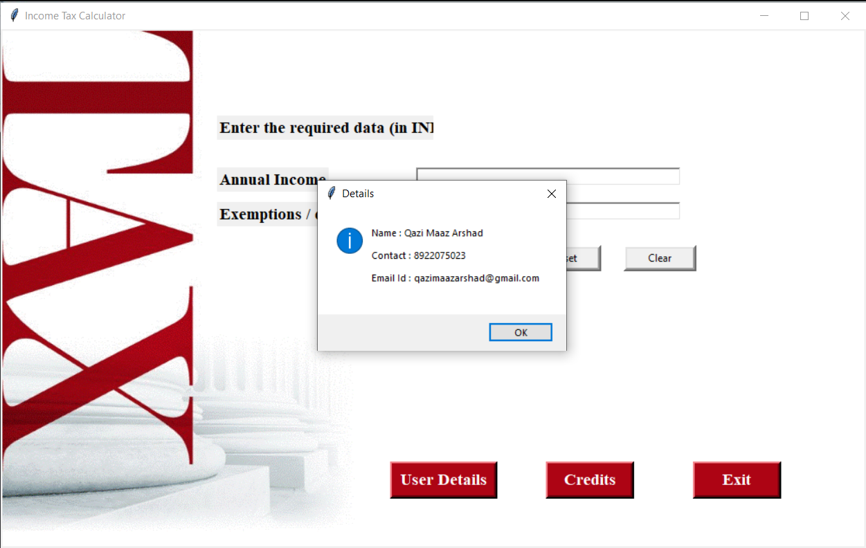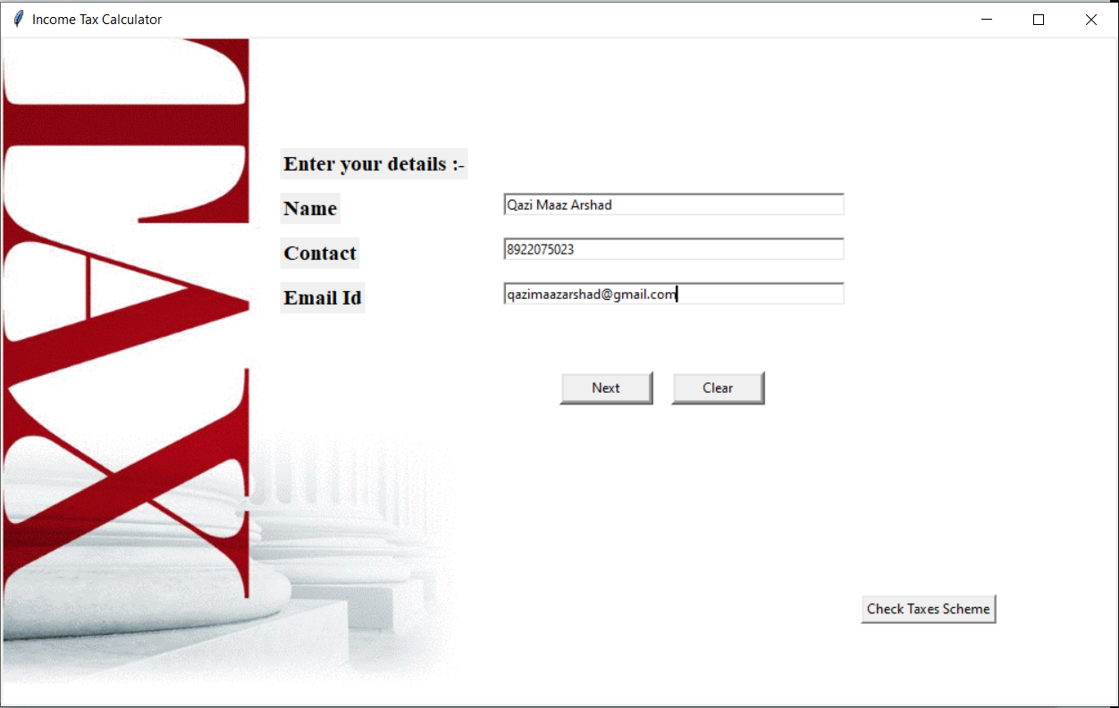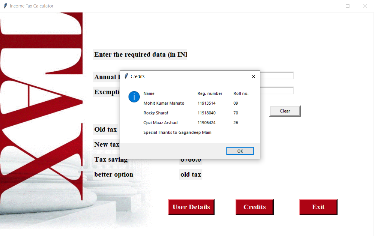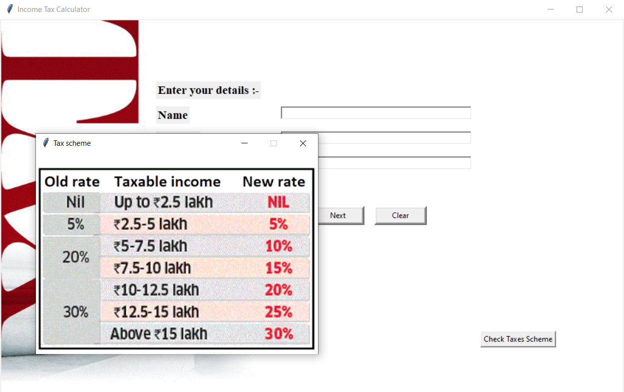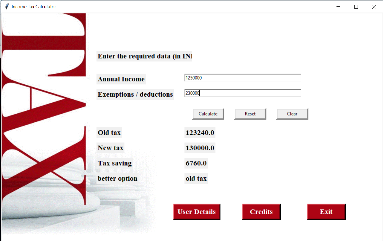 An income tax calculation system for a salaried person. This is a GUI application that allows Indian citizens to calculate their liable income tax and compare between new and old tax schemes.