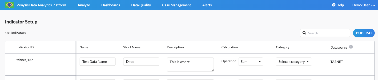 Data Catalog enables Data Managers to manage their indicators and augment them with useful information. Specifically this allows: