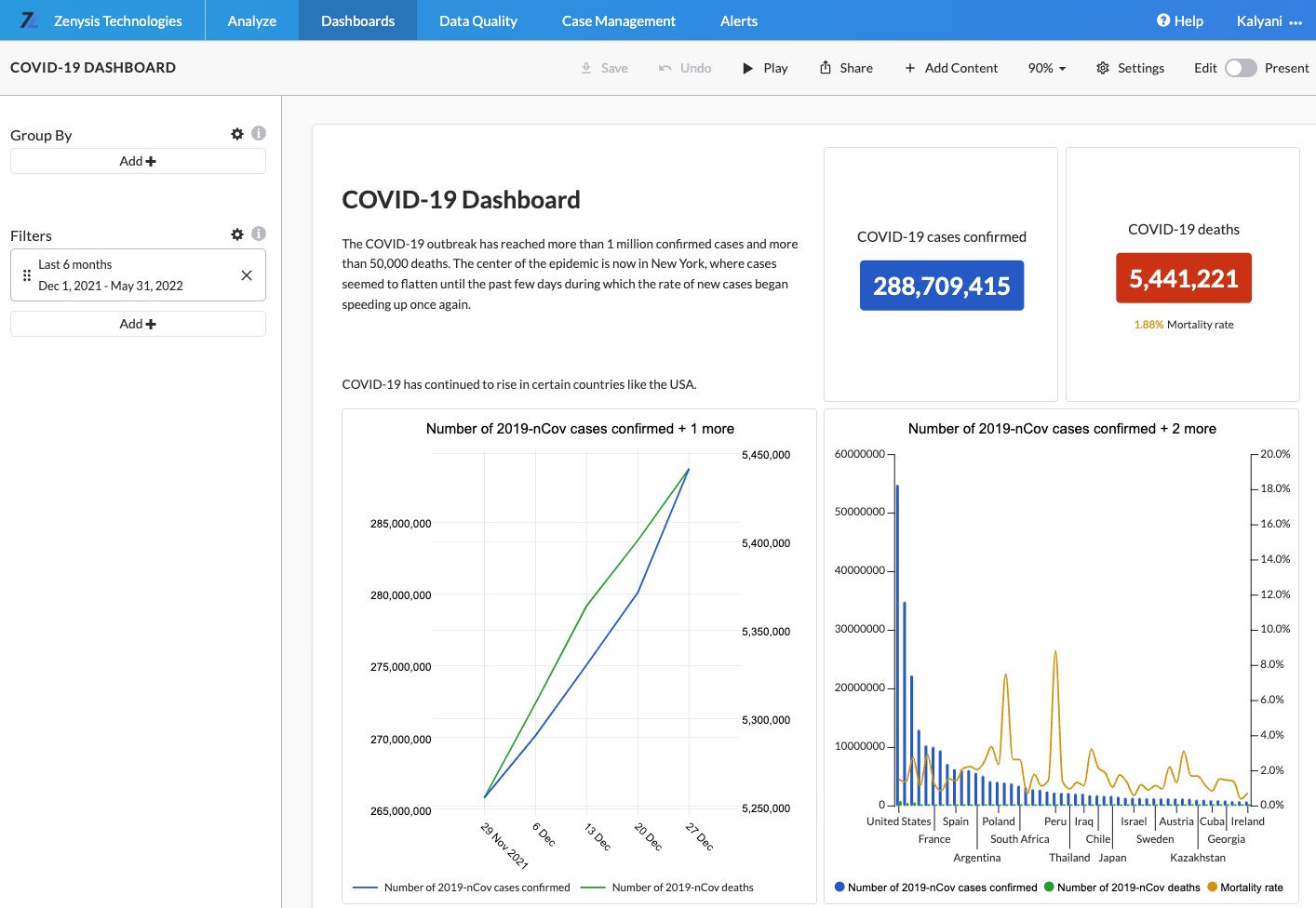The Harmony Analytics Platform (Harmony), developed by Zenysis Technologies, helps make sense of messy data by transforming, cleaning and enriching data from multiple sources. With Harmony, disparate data are displayed within a single analytical view, giving you a complete picture of your data through triangulated queries and customizable visualizations and dashboards.