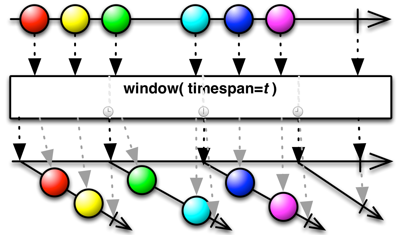 window(timespan, unit)andwindow(timespan, unit, scheduler) - javadoc: