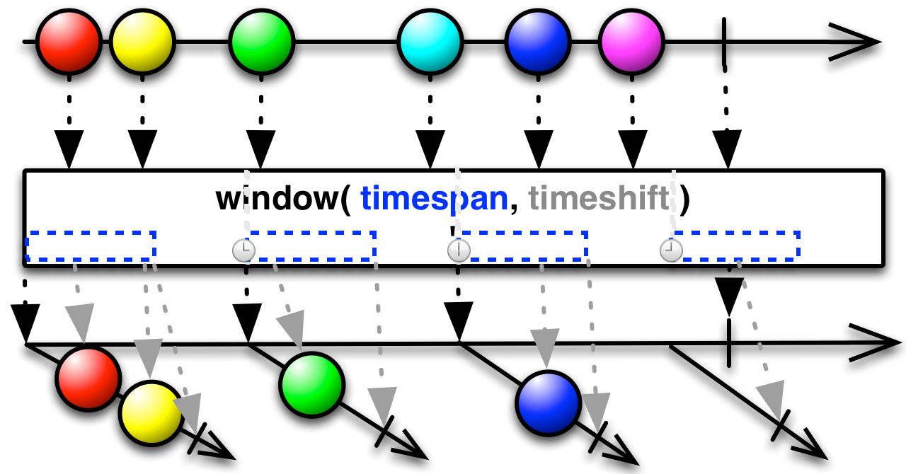 window(timespan, timeshift, unit)andwindow(timespan, timeshift, unit, scheduler) - javadoc: