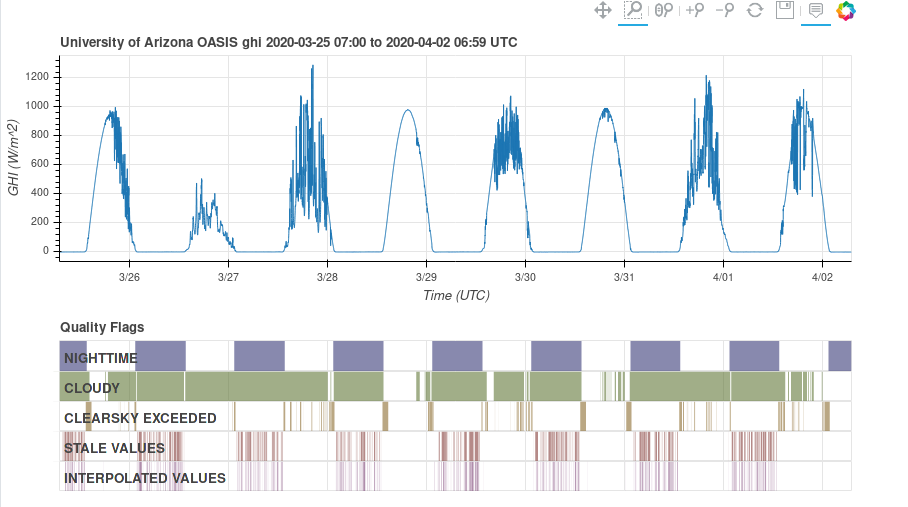 An added benefit of inverting to a Clear or Cloud Free flag is that the default behavior of excluding positive quality flags from reports for these periods makes more sense. I.e. exclude the periods of clearsky from a GHI report vs excluding the cloudy periods. |