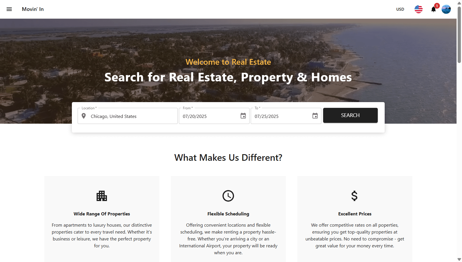Movin' In is a Rental Property Management Platform with an admin panel for managing properties, customers and bookings, a frontend and a mobile app for renting properties.