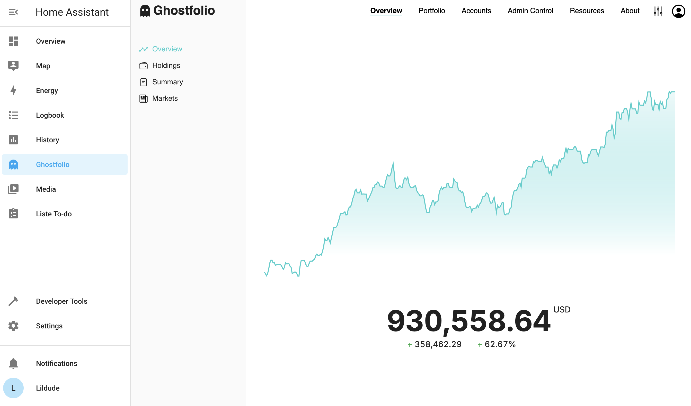 To monitor your Ghostfolio portfolio performance directly within Home Assistant, use the companion Ghostfolio Home Assistant Integration.