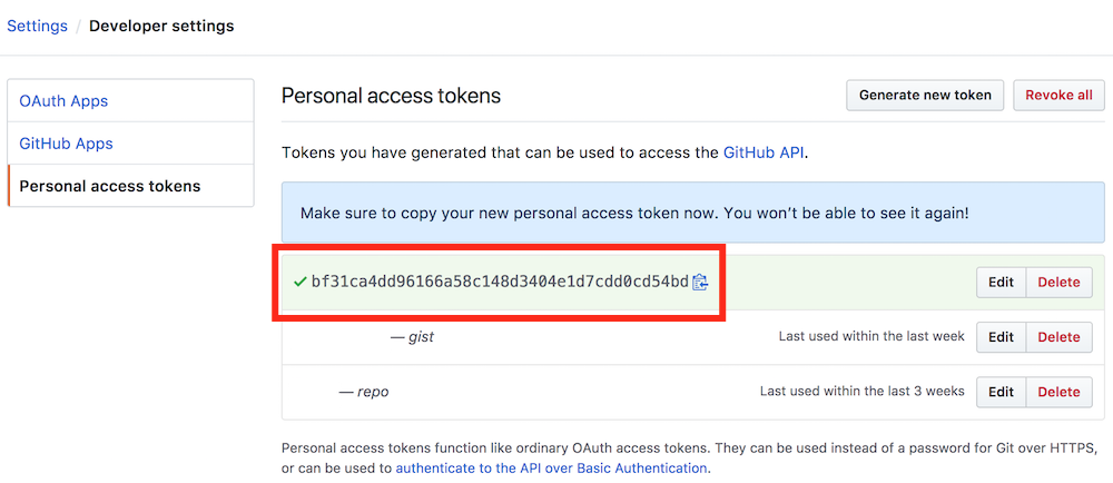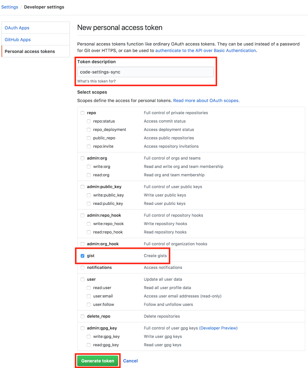 This extension requires your GitHub Account Personal Access Token. You can create one simple by looking into the following pictures. Make sure you add Gist in scope.