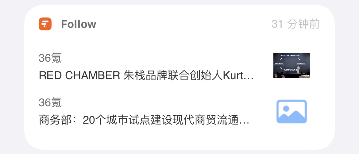 Scriptable Scripts 项目源自@Honye,脚本功能借鉴了@dompling和@anker1209,在此感谢各位的开源项目。 Follow 为Follow做的一款Scriptable小组件脚本 链接 源码 配置项 显示分类 指定站点显示 文字列表展示 缩略图列表展示 特别说明 需要借助BoxJs,不知道的同学,到这里就可以放弃了。 需要借助@senku佬脚本使用的账号数据,这里不知道的同学,也可以放弃了。 更新日志 1.0.1 同步@Honye的脚本更新 优化代码 1.0.0 发布 预览 特别鸣谢 Honye dompling anker1209