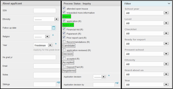 Every step in the process can be fully customized to serve your school’s needs. From an applicant's page, the filter function may sort results accordingly.