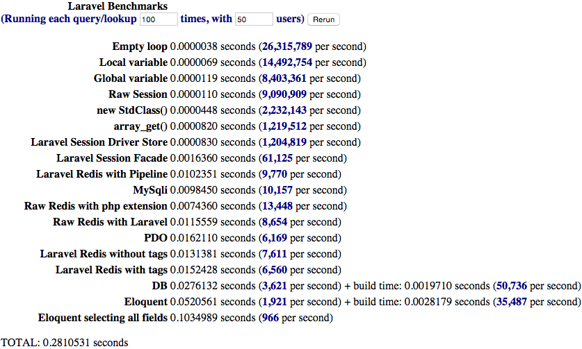 Quick-and-dirty Laravel 5.1 Benchmarks for Cache, DB, Session, etc.