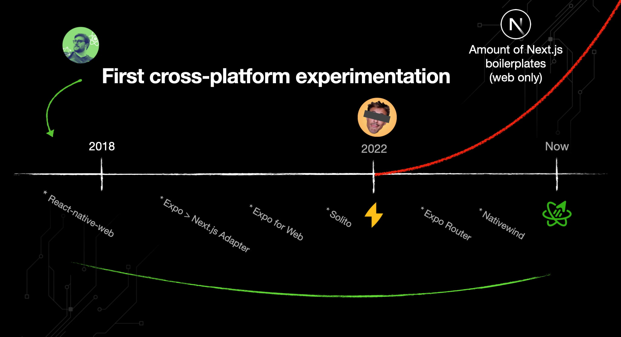 Timeline comparison to when I started experimenting with these universal app concepts vs. the releases Expo did, and the Web-Only boilerplate that have skyrocketed
