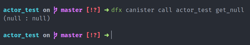 dfx canister call actor_test get_null=>(null: null)