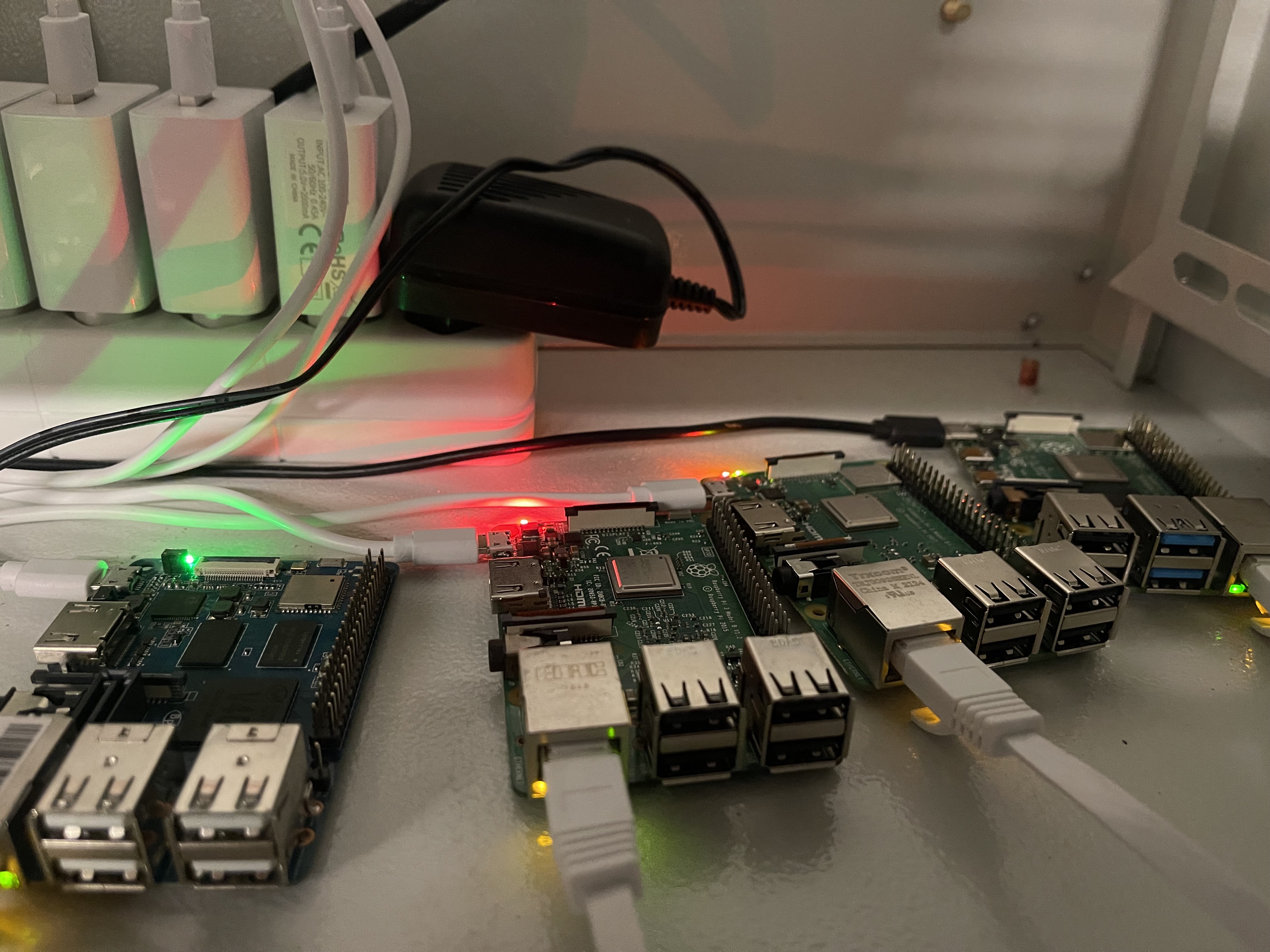 Left to right: orange pi zero h2 leds ok orange pi zero h5 leds ok rockpi64 leds ok m2 berry ledsok pi3b red and green pi3b+ red and green pi 4b no leds