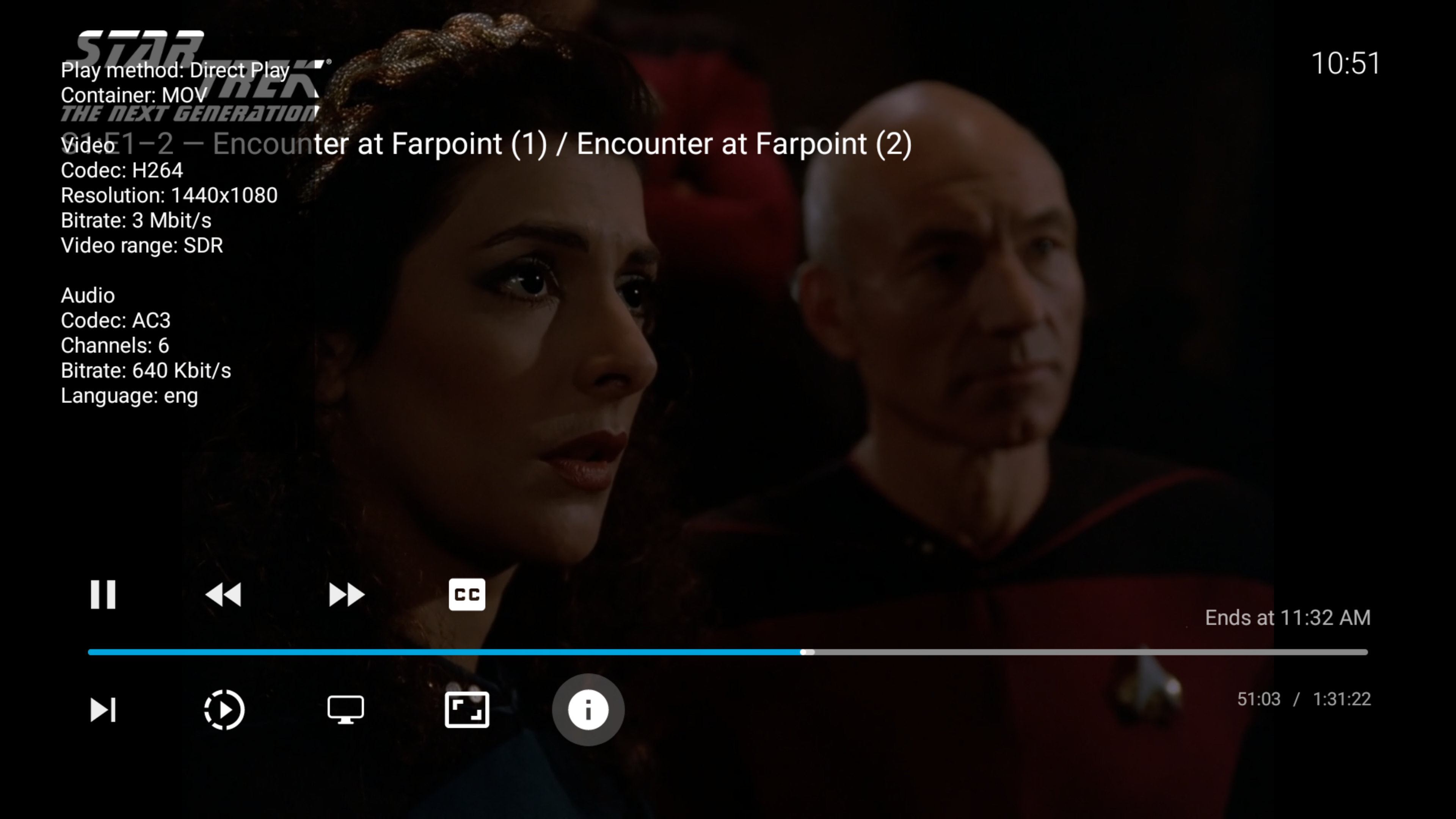 This adds a playback info button to the video player overlay that displays technical details about the currently playing media. When pressed, a popup appears showing the play method (Direct Play, Direct Stream, or Transcoding), container format, video stream details (codec, resolution, bitrate, HDR type), and audio stream details (codec, channels, bitrate, language). This is useful for troubleshooting playback issues and understanding how media is being delivered to the client.