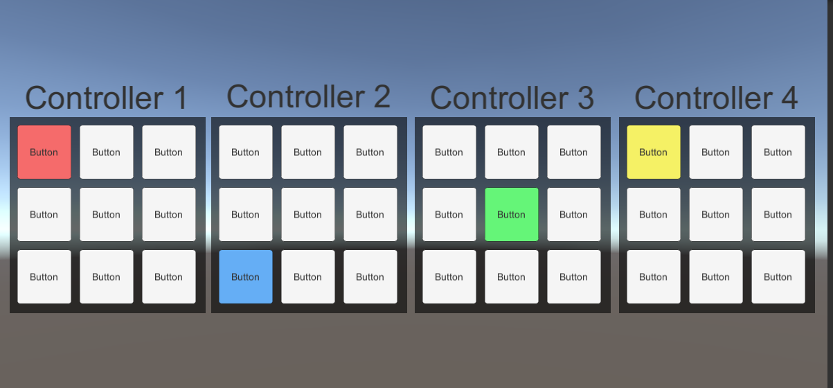 Each player input script then needs to be assigned to a X_Input module and the custom event system needs a button assigned to be the first selected button for each UI panel.