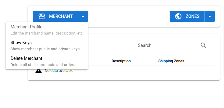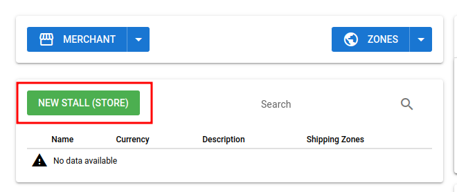 To create a stall, you first need to set a Shipping zone. Click on the Zones button and fill in the fields:
