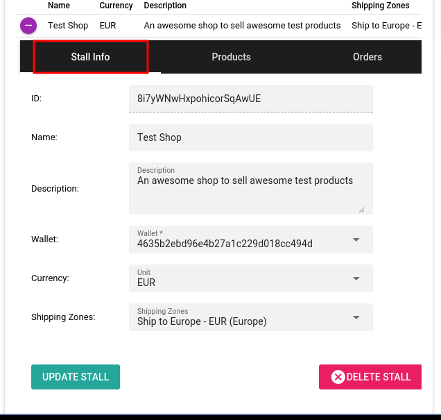 On the Stall section you can also see (update or delete) the stall details in Stall Info tab