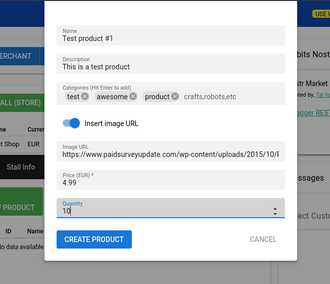 - Supply an URL for your product image (you can upload an image but it's recommended that the images are hosted outside of LNbits)