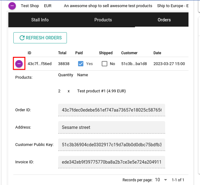 When you get an order, you can see the details by clicking on the "Plus" sign for the order