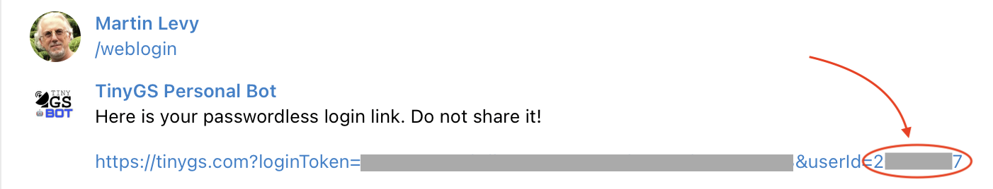 Or, you can use your Telegram TinyGS Personal Bot channel to find your user-id.