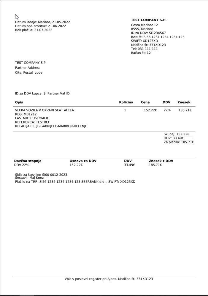 - Only Slovenian language support on the invoice template(FOR NOW)