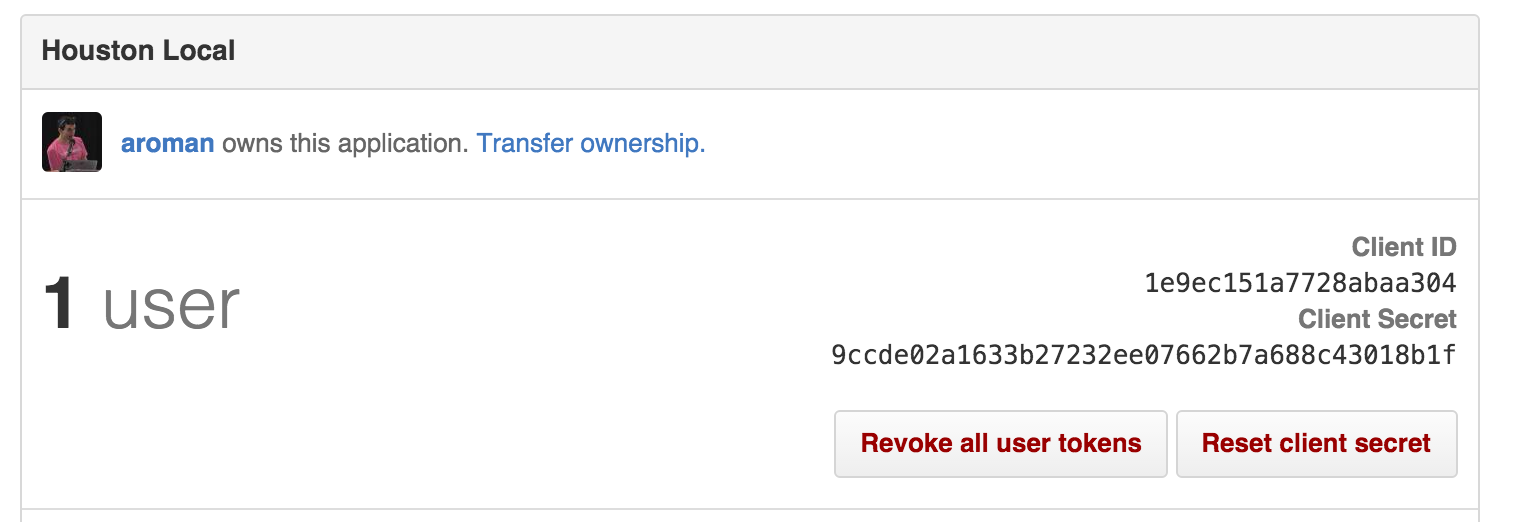 - Then, create a GitHub OAuth application for testing Houston: https://github.com/settings/applications/new.