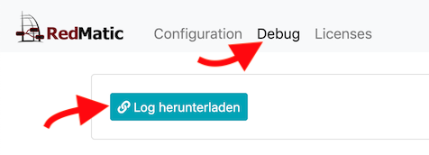 RedMatic loggt in das CCU Syslog (/var/log/messages), im UI kann das Log (gefiltert auf Meldungen von RedMatic/Node-RED und angereichert mit Versionsinformationen) heruntergeladen werden: