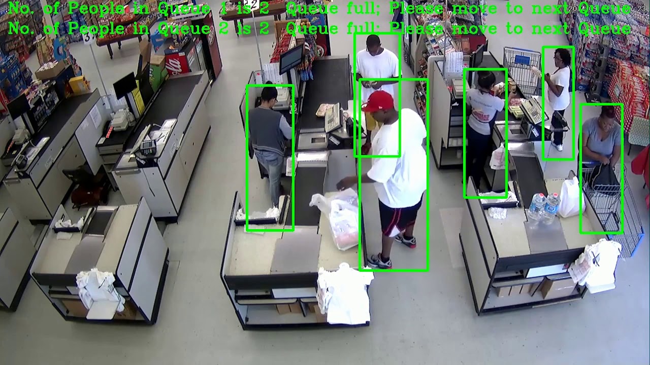 This project demonstrates how to detect people in queues (in order to redirect them to shortest queue) using inference on pre-trained neural network with Intel OpenVINO framework.