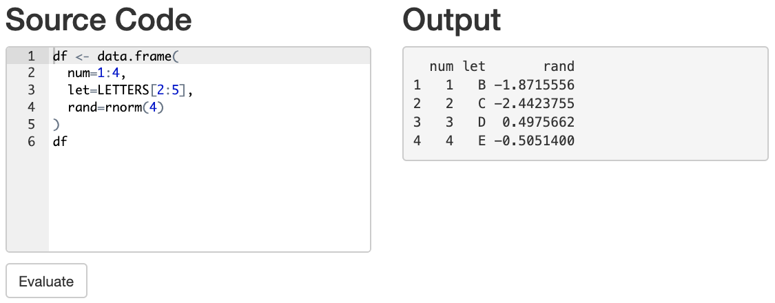 Shows an example of using shinyAce to allow the user to compose R code which will then be evaluated on the server.