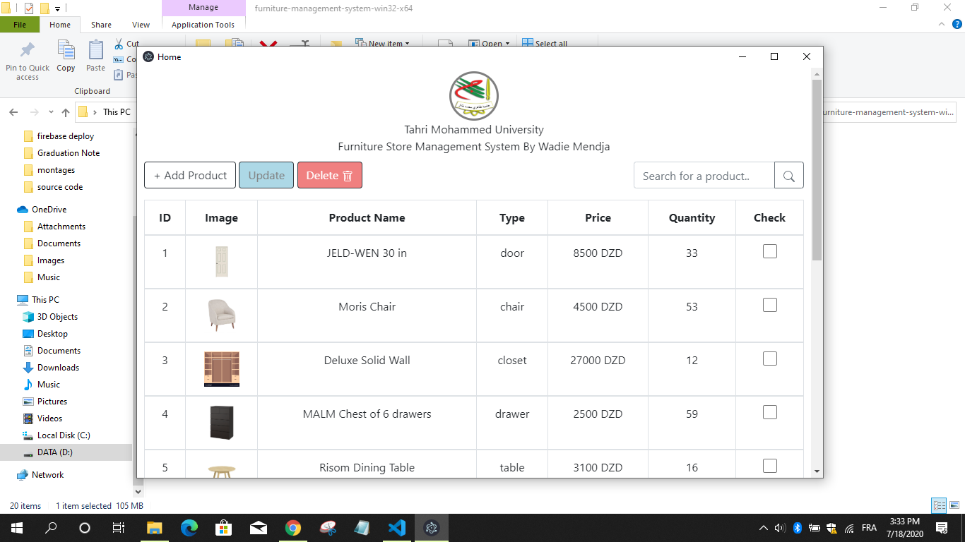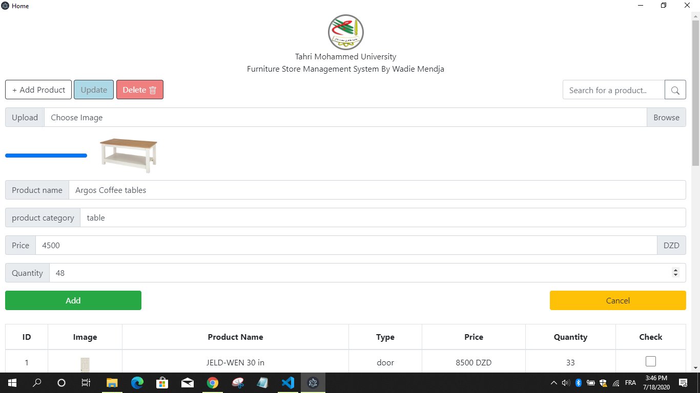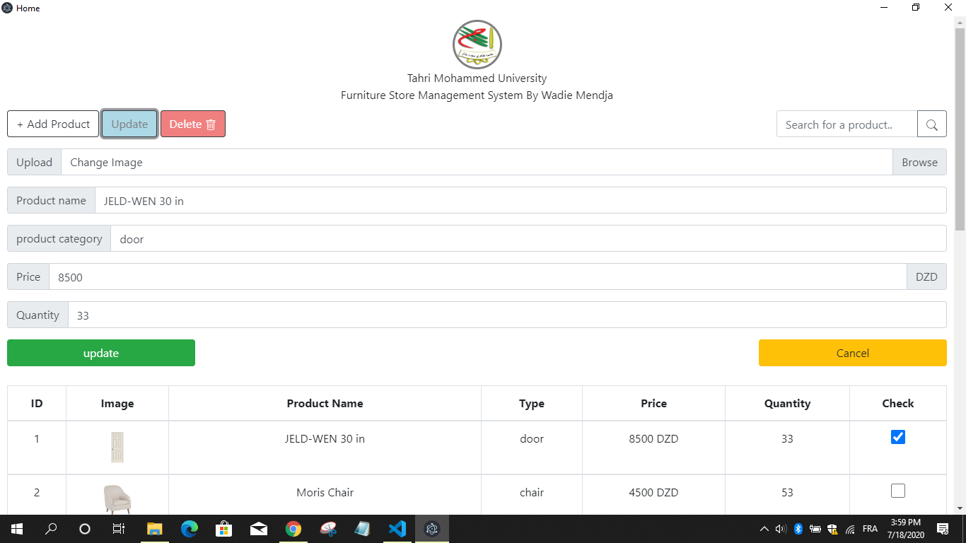 Select a product and update its data (change the image, product name, category, price and quantity)