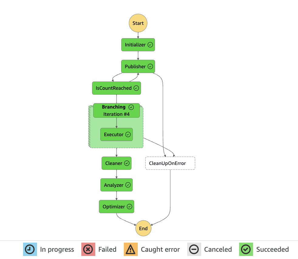 Please note that the input function will be executed in your AWS account and perform real HTTP requests, SDK calls, cold starts, etc. The state machine also supports cross-region invocations and you can enable parallel execution to generate results in just a few seconds.