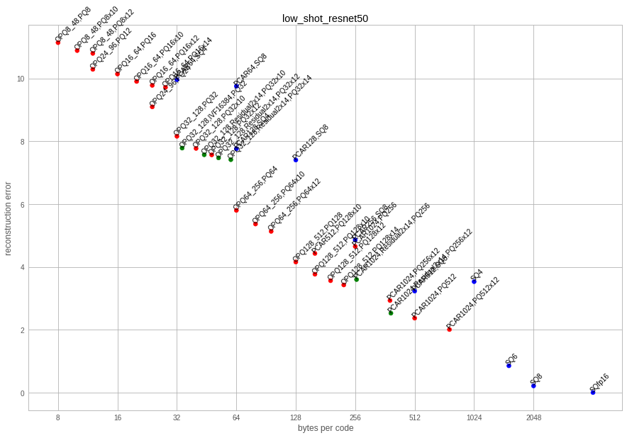 - the reconstruction error on an independent set of 1M vectors. The reconstruction is the average L2 error (non squared) after encoding and decoding back. Note that some codecs do not support reconstruction (ITQ) in a meaningful way.