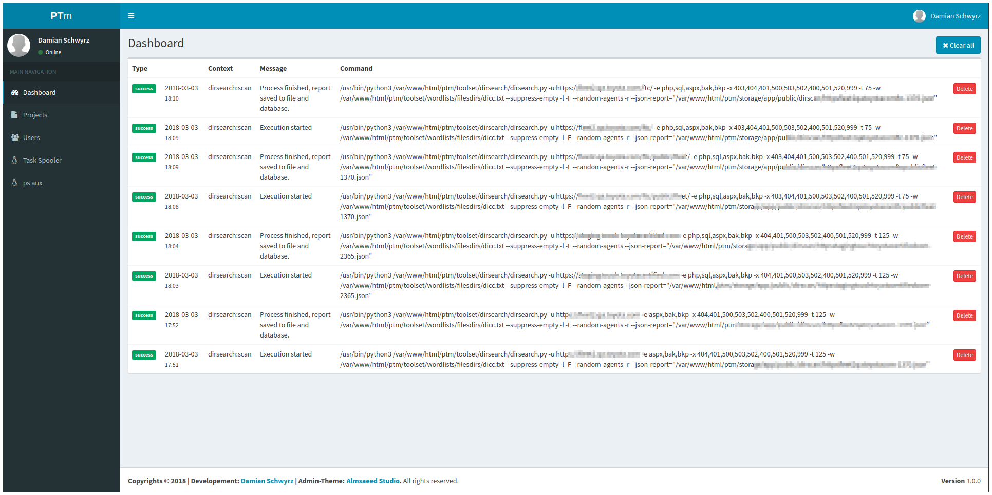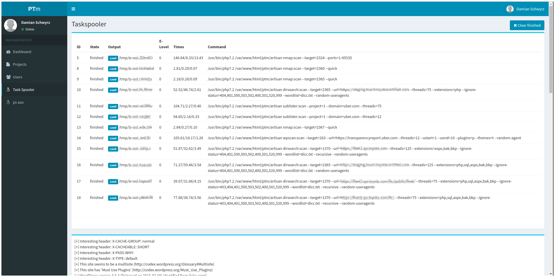 ptM is a frontend which gives the user the ability to manage different pentest projects. A limited set of popular tools like massdns, nmap or wpscan can be executed with a click.
