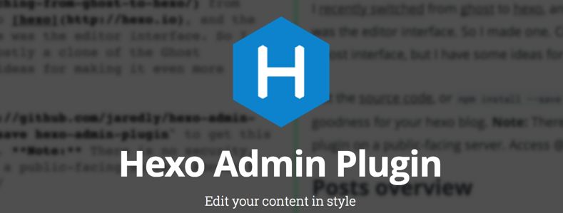 An admin UI for the Hexo blog engine. Based off of the Ghost interface, with inspiration from svbtle and prose.io.