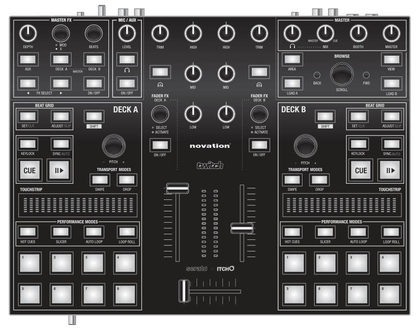 A mapping for the Novation Twitch will be included in Mixxx 2.1. You can use it now with Mixxx 2.0 by saving the following files to your controller mapping file locations#user controller mapping folder: