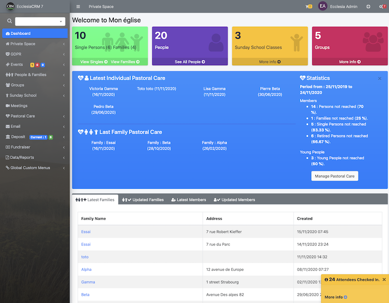 To test out the demo, you may login to the https://demo.ecclesiacrm.com with the following:
