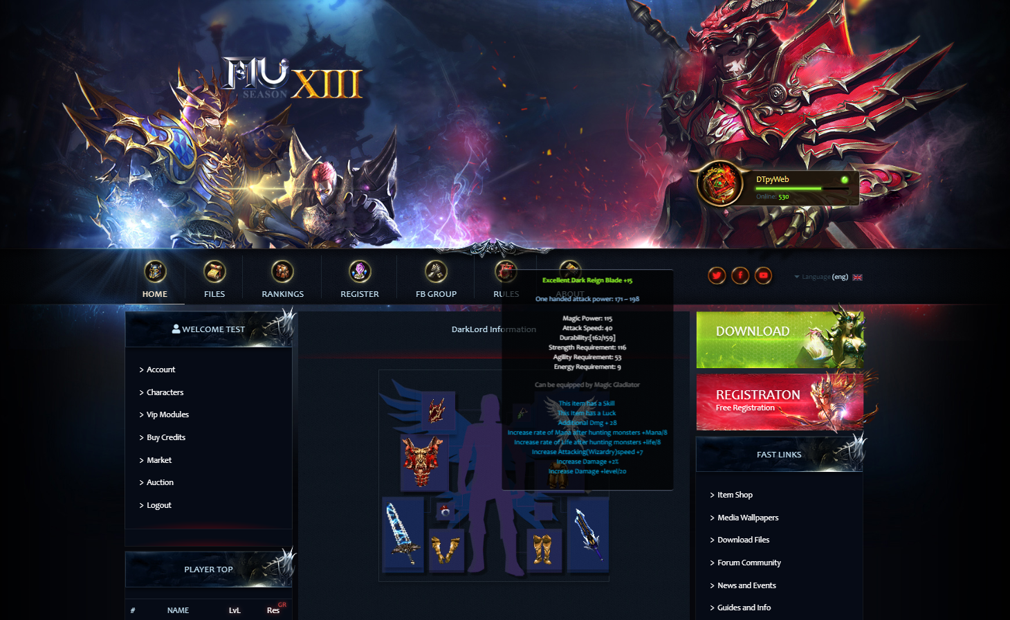 DTpyWeb is another MuOnline website but this time instead in PHP it is written in Python with Flask and Jinja2 template system. I created it for DarksTeam Forum users first.