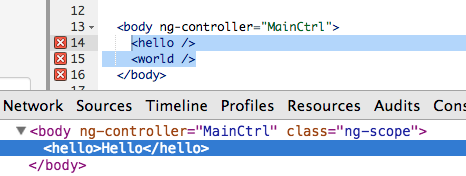 Perceba que o nome da directiva em camelCase, helloWorld pode ser usado das seguintes formas no template: