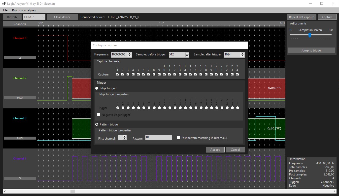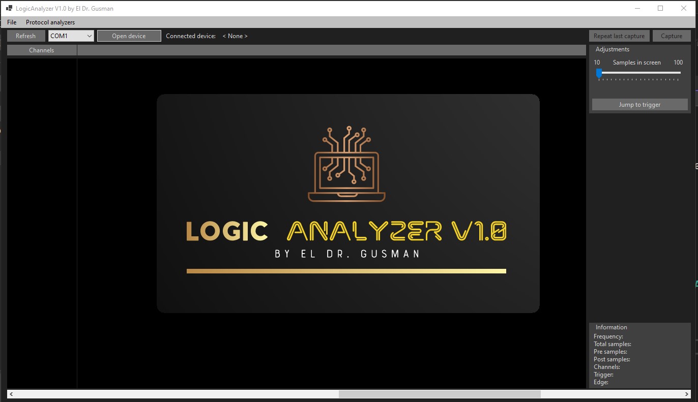 Conneced to device LOGIC_ANALYZER_V1_0 in port /dev/ttyACM0