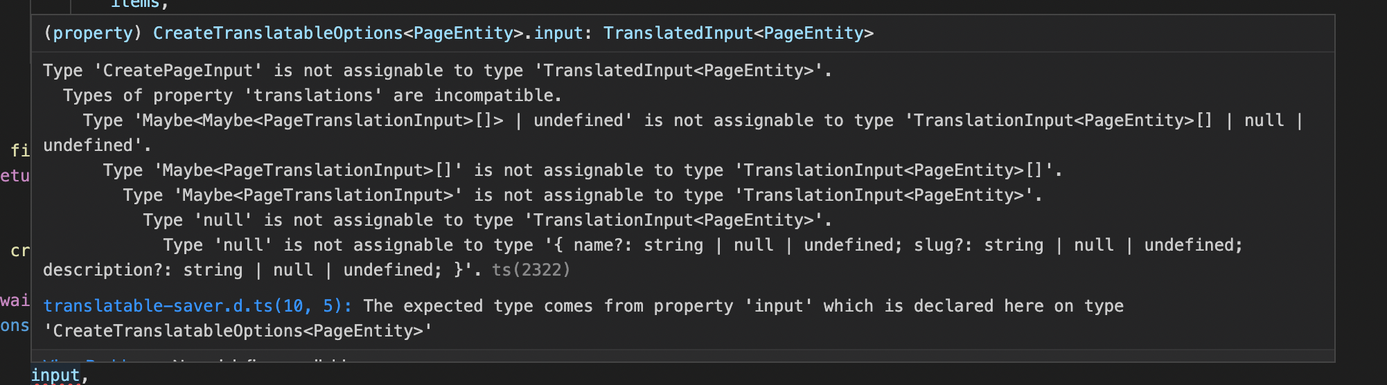 Hi, My first guess - try making your translations input array non-nullable: |