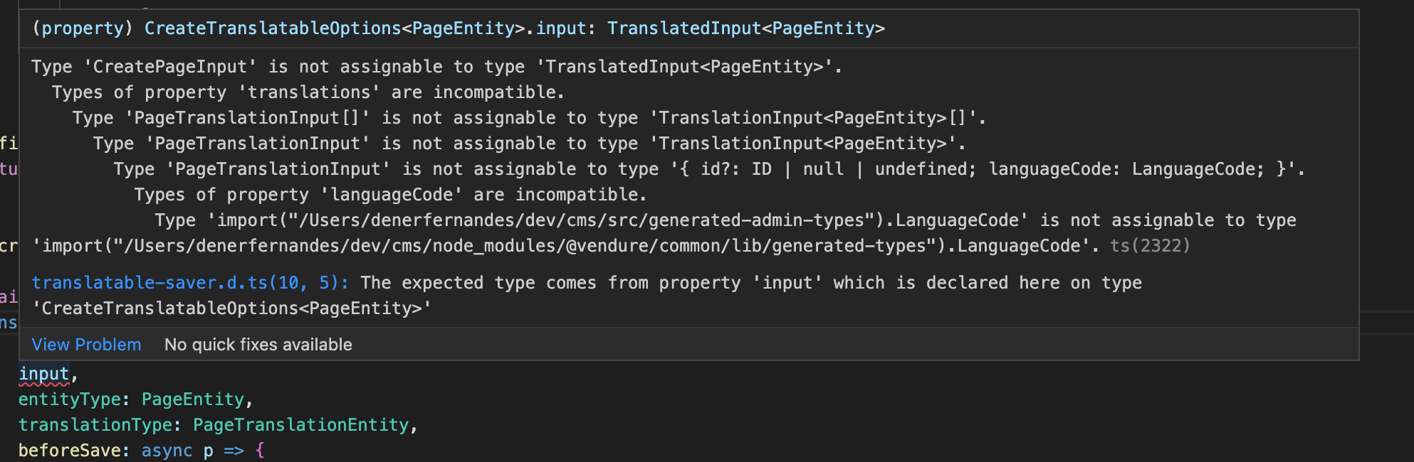 Hi guys, I'm working on a plugin for cms, I'm using the products as a reference, but I'm having problems with the types, they don't match.