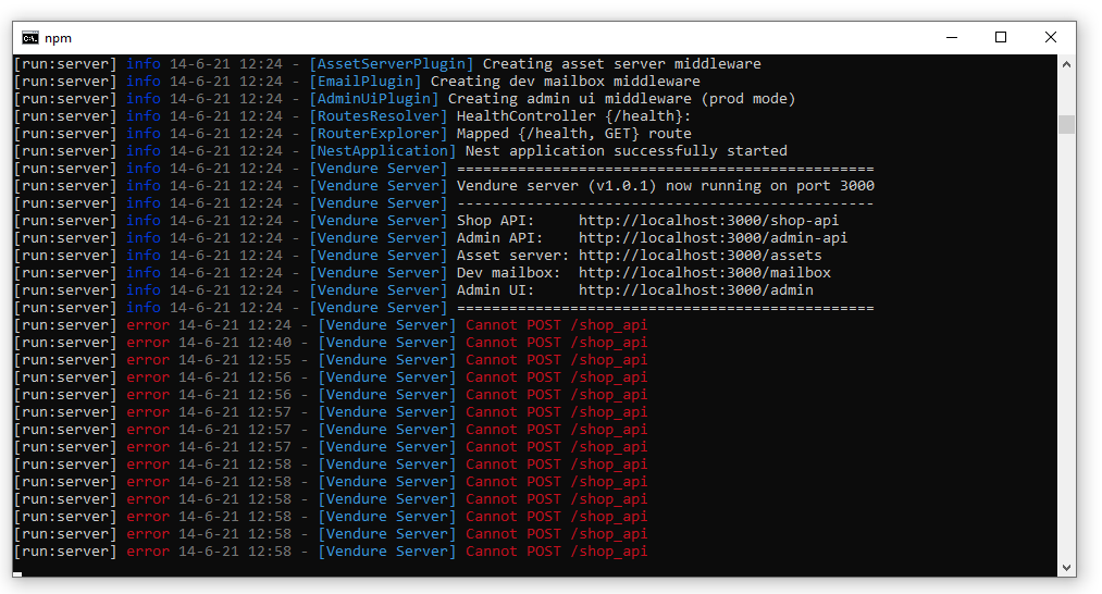 Trying my first steps with connecting Next to Vendure and I get a problem with 'Cannot POST /shop_api'... Next server is running on localhost:8080 , the Vendure server on localhost:3000 Vendure admin client and GraphiQL are working fine... Any ideas what I'm doing wrong? |